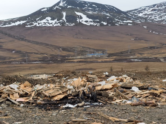 На 41-42 км летней дороги Билибино – Певек, после работы монтажников ЛЭП, остался настоящий экологический беспорядок: груды деревянных обломков, бумага, строительный мусор и другие отходы.