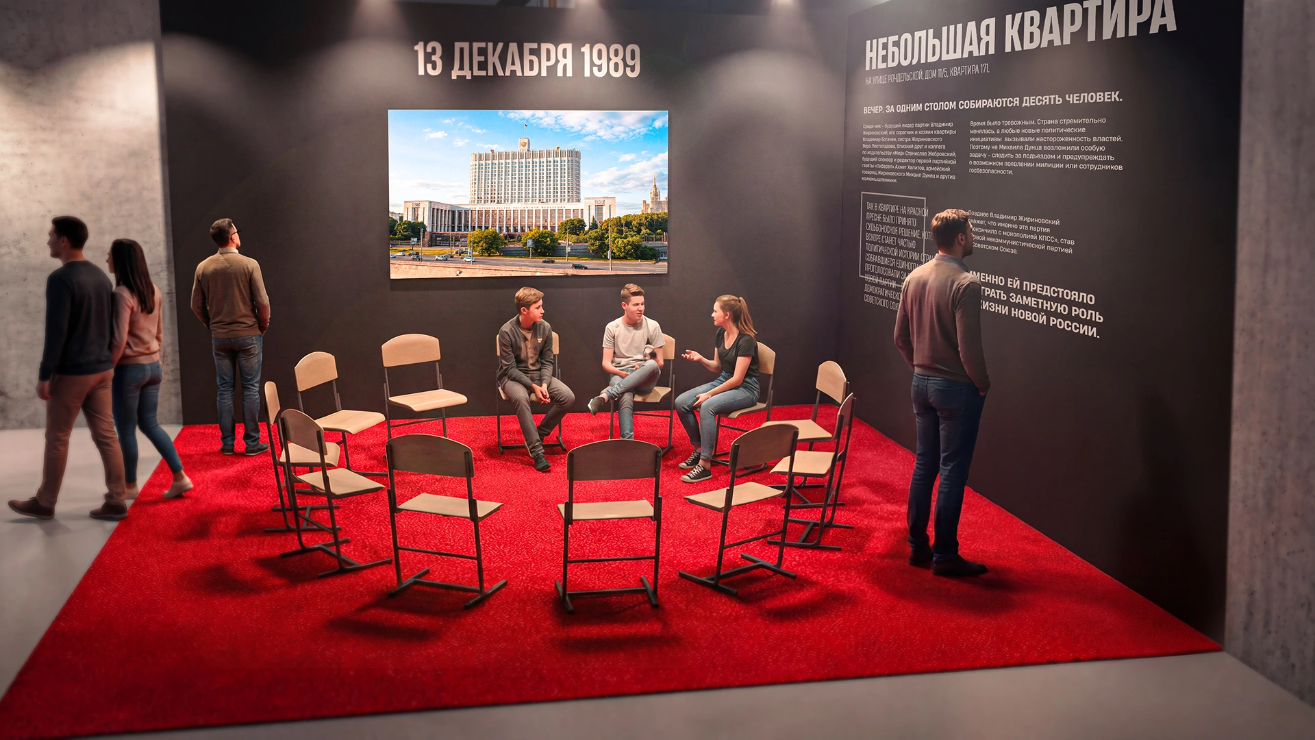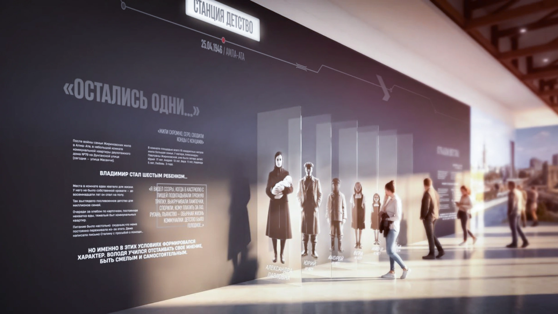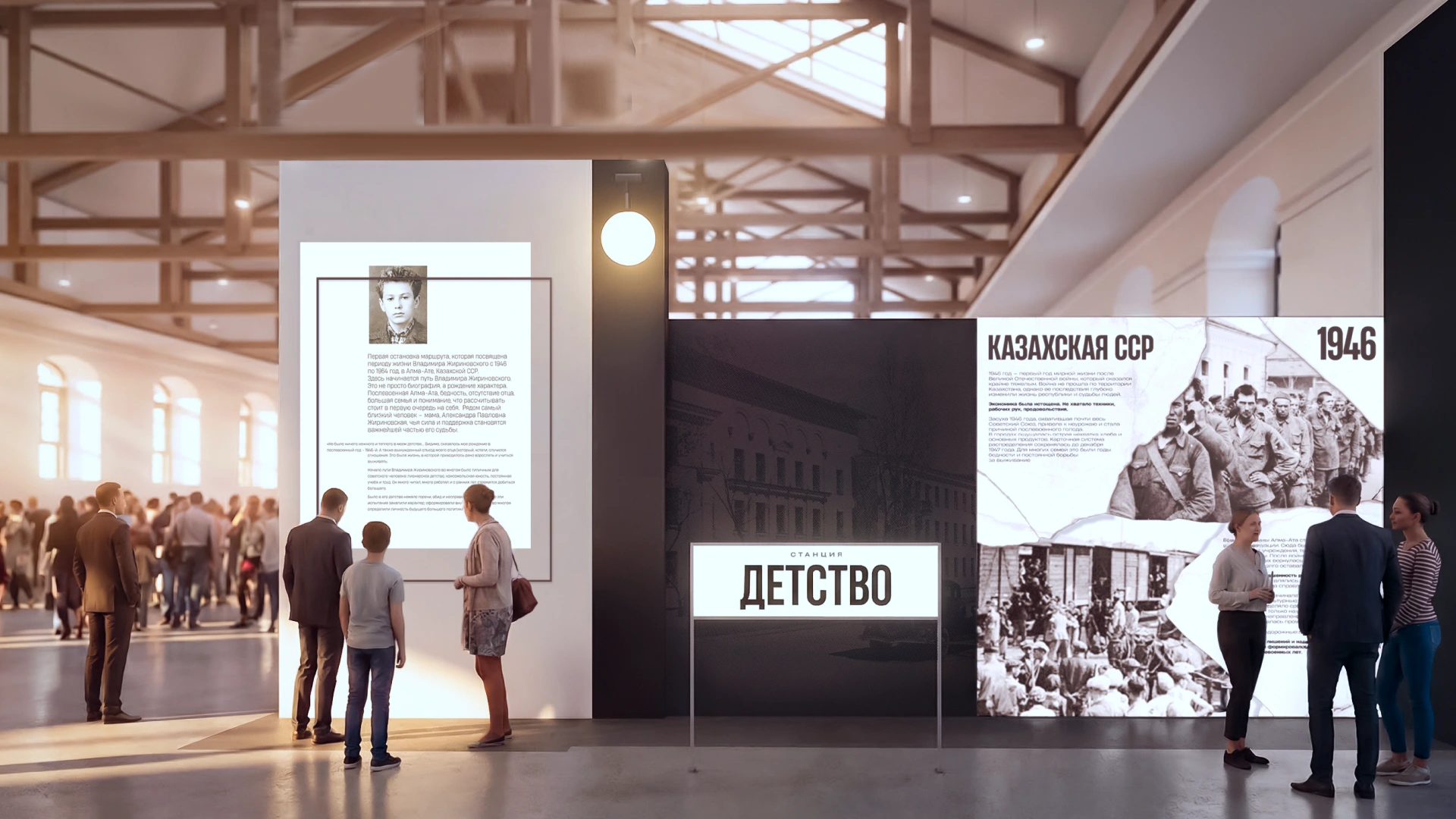 Иммерсивный маршрут по ключевым станциям жизни политика. Каждая зона воссоздает атмосферу времени и позволяет ощутить себя частью истории. Уникальный аудиогид — экскурсию проведет сам Владимир Вольфович.