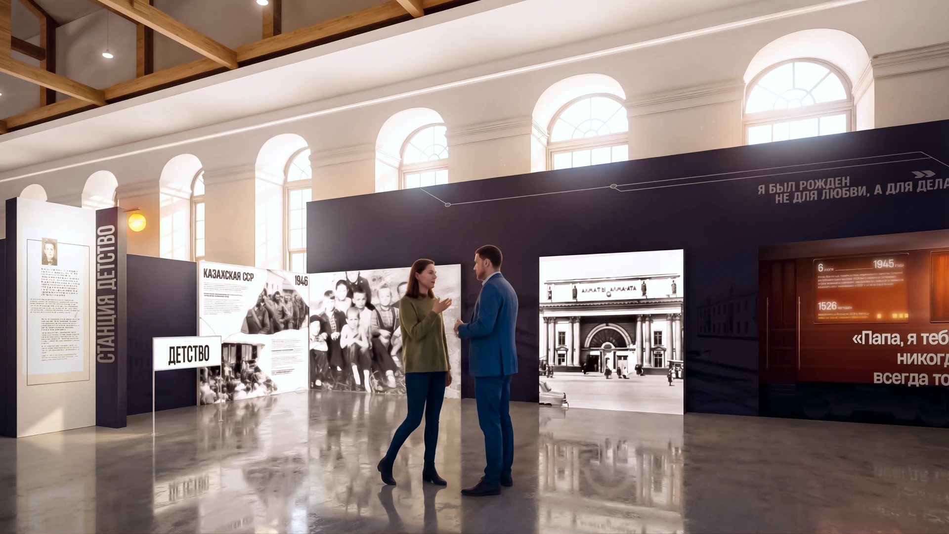 Посетители пройдут по тематическим станциям, каждая из которых — ключевая веха в судьбе страны, пропущенная через призму личности великого политика.